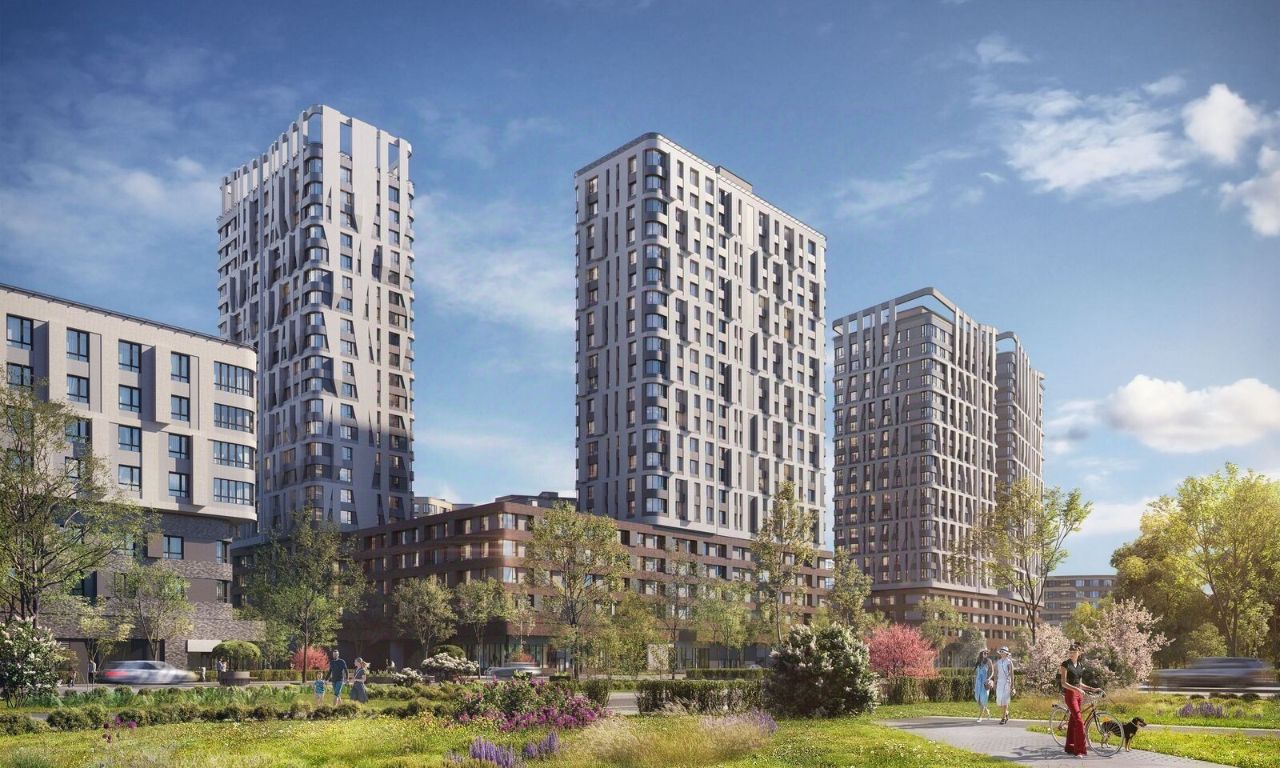 Особенности квартала: • Свой парк ''Зеленая Река'' - 10 га зелени и развлечений на любой вкус! • Уникальная для Москвы архитектура - Проект создан архитектурной мастерской ATRIUM по дизайн-коду британских бюро LDA Design и UHA London. • Богатая инфраструктура с детскими садами и лицеем им. Баумана, кафе и ресторанами, супермаркетами и аптеками, зоной для фитнеса, бассейном и мед. центром. • Квартиры с панорамными окнами, террасами, ванными с окнами и каминами редких форматов. • Закрытые безопасные зелёные дворы-парки без машин!