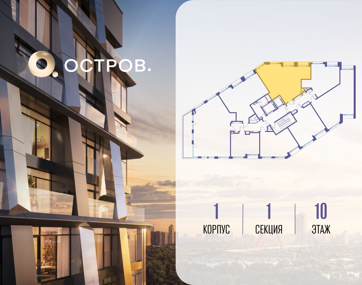 ОСТРОВ.12.1 - часть жилого комплекса на западе Москвы, в 15 минутах езды от центра. Это настоящий заповедник посреди большого города, в окружении реки и 650 га заповедников. Здесь все необходимое находится по соседству: от детского сада до супермаркета, от фитнес-зала до серфинг-центра. На территории созданы все условия для отдыха и общения: клубная инфраструктура в домах и дворы-парки, набережные и променады, маршруты для спортсменов, детей и возрастных жителей. В нескольких минутах ходьбы расположена станция метро ''Мнёвники'' БКЛ. На автомобиле - 10 минут до Москва-Сити и 15 минут до Садового кольца.