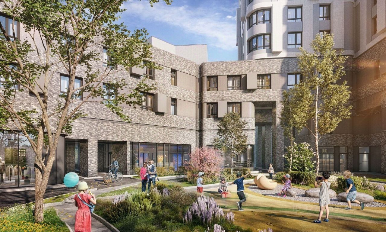 Особенности квартала: • Свой парк ''Зеленая Река'' - 10 га зелени и развлечений на любой вкус! • Уникальная для Москвы архитектура - Проект создан архитектурной мастерской ATRIUM по дизайн-коду британских бюро LDA Design и UHA London. • Богатая инфраструктура с детскими садами и лицеем им. Баумана, кафе и ресторанами, супермаркетами и аптеками, зоной для фитнеса, бассейном и мед. центром. • Квартиры с панорамными окнами, террасами, ванными с окнами и каминами редких форматов. • Закрытые безопасные зелёные дворы-парки без машин!