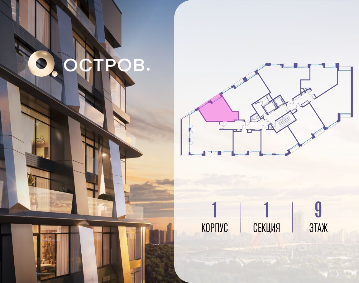 ОСТРОВ.12.1 - часть жилого комплекса на западе Москвы, в 15 минутах езды от центра. Это настоящий заповедник посреди большого города, в окружении реки и 650 га заповедников. Здесь все необходимое находится по соседству: от детского сада до супермаркета, от фитнес-зала до серфинг-центра. На территории созданы все условия для отдыха и общения: клубная инфраструктура в домах и дворы-парки, набережные и променады, маршруты для спортсменов, детей и возрастных жителей. В нескольких минутах ходьбы расположена станция метро ''Мнёвники'' БКЛ. На автомобиле - 10 минут до Москва-Сити и 15 минут до Садового кольца.
