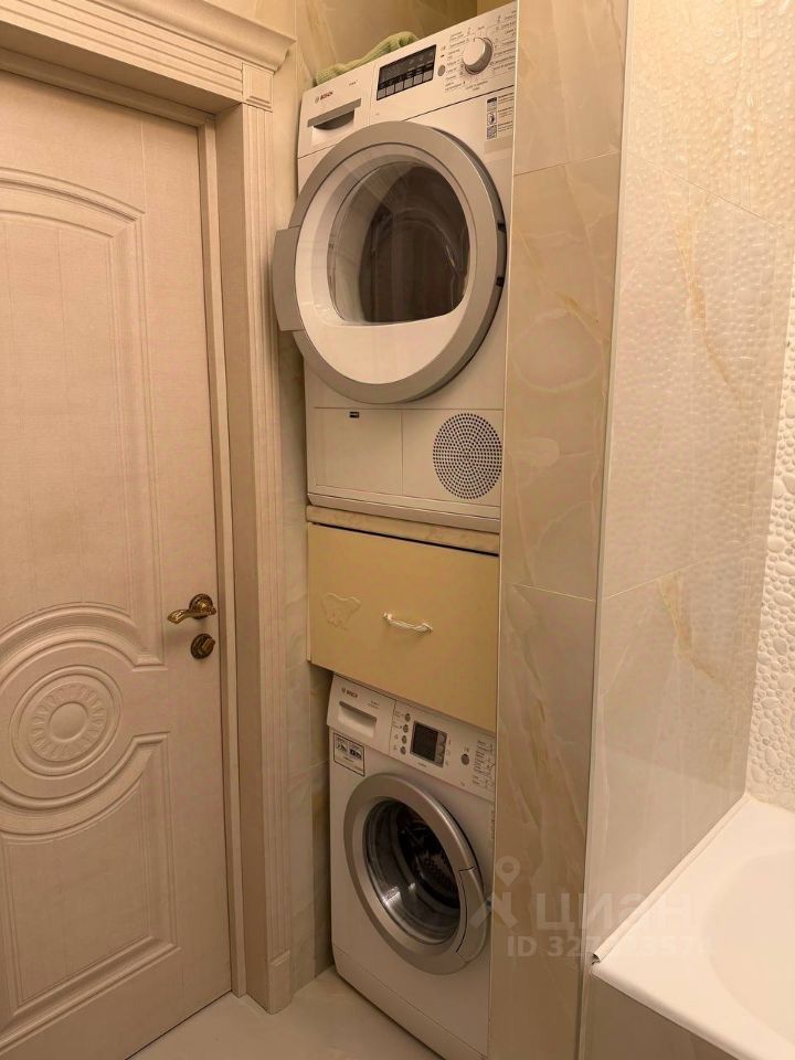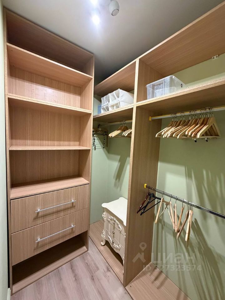 Балкон, спальня, кухня-гостиная, туалет с ванной, гардеробная, очень много мест для хранения. Квартира оборудована посудомоечной машиной, стиральной и сушильной.