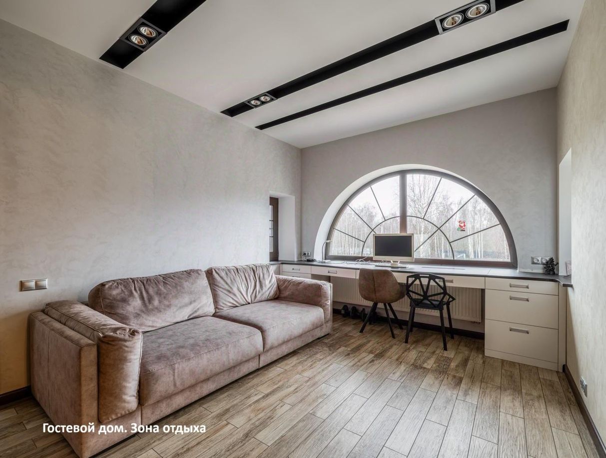 ГОСТЕВОЙ (кирпичный) дом включает - гостевую квартиру с четырьмя спальнями и двумя санузлами - блок персонала (кухня-гостиная, спальня, санузел) - спа-зону (сауна, кухня, лаунж, массажная) - гараж на 3 авто