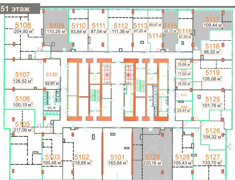 Площадь: 669 м2. Планировка: смешанная. Состояние: готово к въезду. Ставка (включая эксплуатацию): 61 000 руб. за м2/год. Арендная плата: 3 400 750 руб./мес. Налог: включая НДС. Коммунальные расходы: оплачиваются по факту. Этаж: 51 из 59. Тип аренды: Прямая аренда. Охрана: круглосуточная охрана здания.