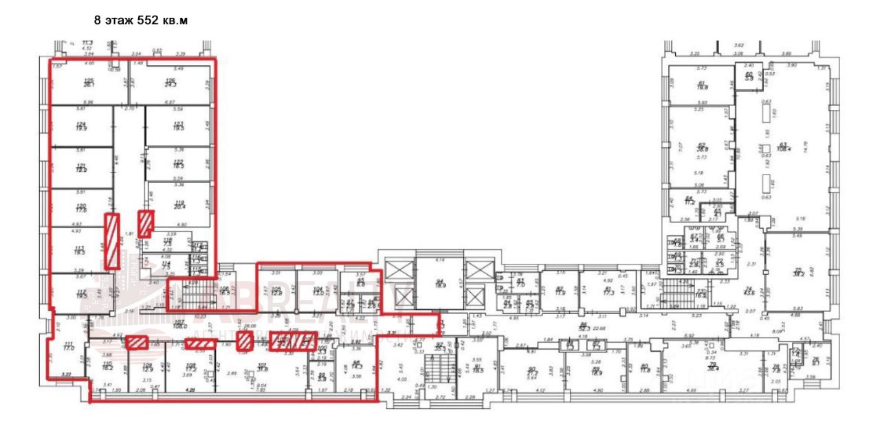 8 этаж офис 552 кв.м - кабинетная планировка, с/у.