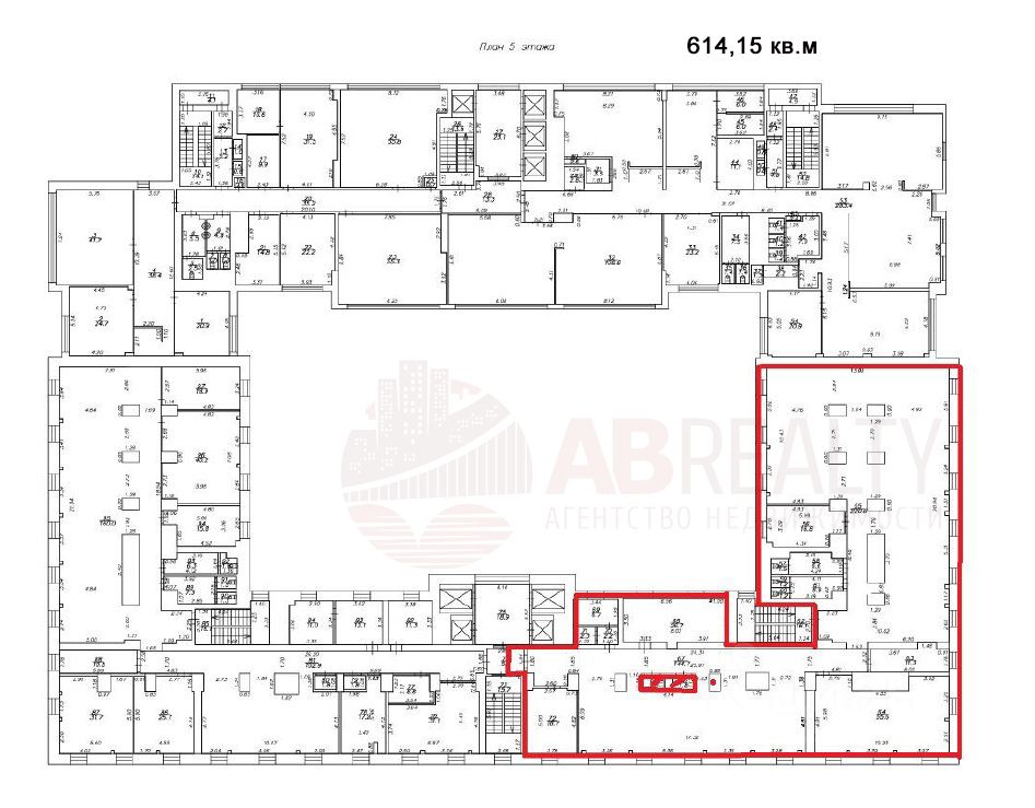 5 этаж офис 614 кв.м - зоны open-space, несколько кабинетов, с/у.