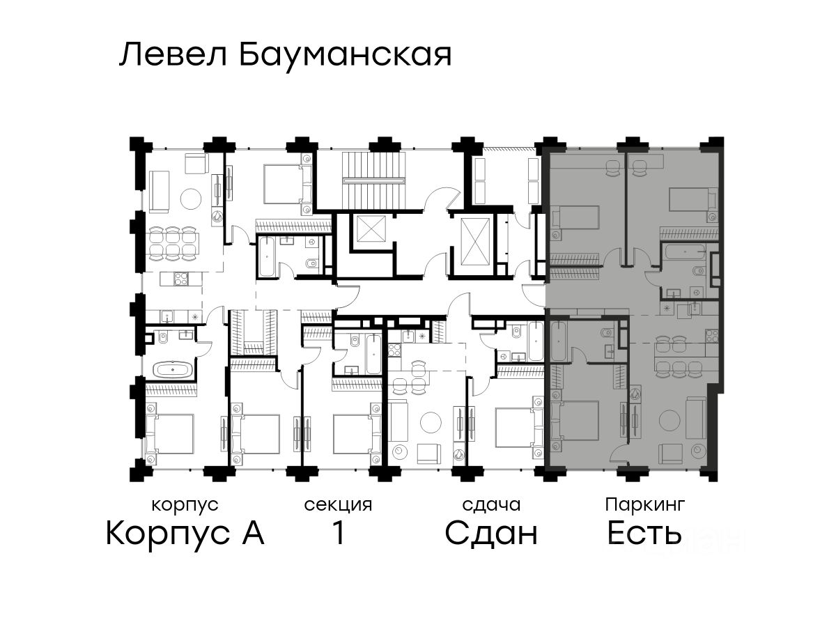 В Басманном районе (ЦАО) продается 4-комнатная квартира площадью 92.90 кв.м без отделки. Квартира расположена на 9 этаже 9-этажного корпуса '' A'' в жилом комплексе бизнес-класса Левел Бауманская (компания Level Group).