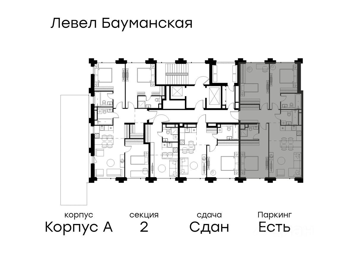 В Басманном районе (ЦАО) продается 4-комнатная квартира площадью 92.40 кв.м без отделки. Квартира расположена на 11 этаже 11-этажного корпуса '' A'' в жилом комплексе бизнес-класса Левел Бауманская (компания Level Group).