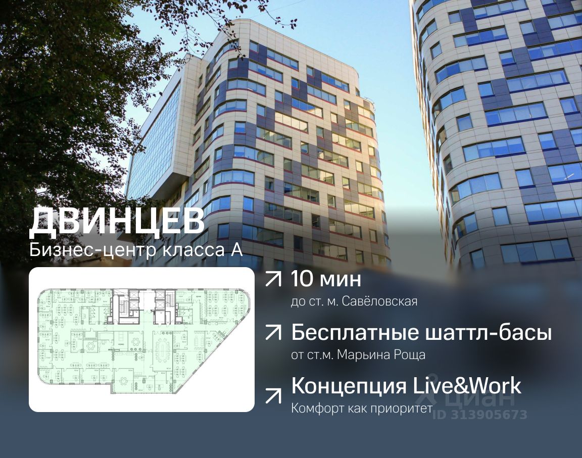 ПРЕИМУЩЕСТВА: • помещения сдается с дизайнерской отделкой, создающей уютную атмосферу, • блок 1269 м² сдаётся с мебелью, • рассадка на 140 рабочих мест, кабинеты руководителей, переговорные, серверные, лаундж-зоны, кухня+обеденная зона, гардеробные, с/у, • всего 10 минут пешком до станции метро Савёловская, а также бесплатные шаттл-басы от бизнес-центра до станции метро Марьина Роща, • есть возможность арендовать конференц-зал, • наземный открытый паркинг на 630 машиномест для резидентов и гостей комплекса.