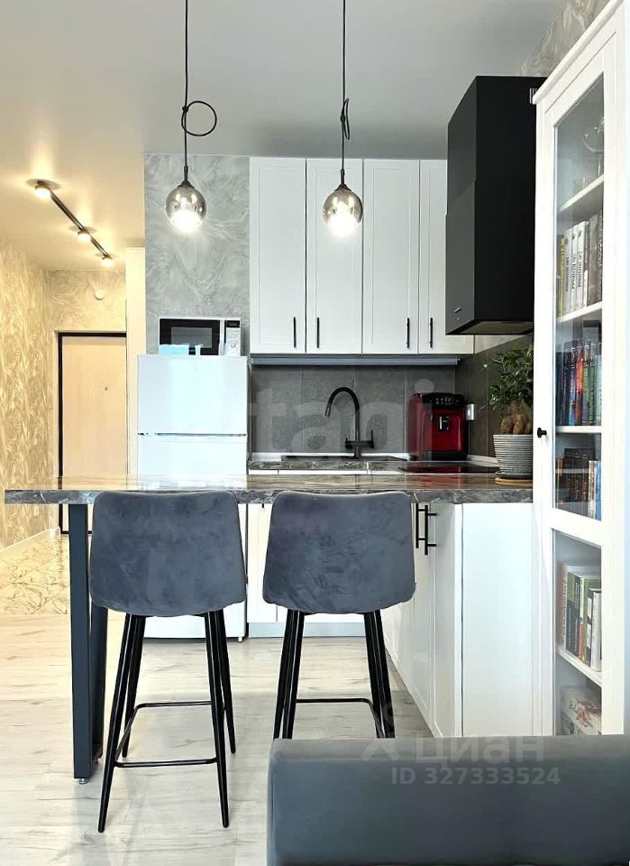 Грамотный дизайн-проект позволяет рационально использовать каждый сантиметр площади, стильный ремонт в нейтральных тонах сделан ''для себя'', с использованием качественных материалов. ''Умный дом'' с Алисой позволяет голосом управлять освещением и температурой в студии.