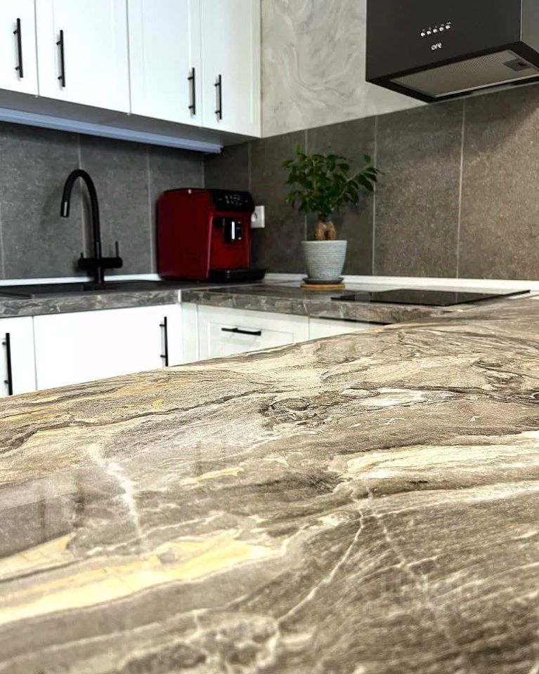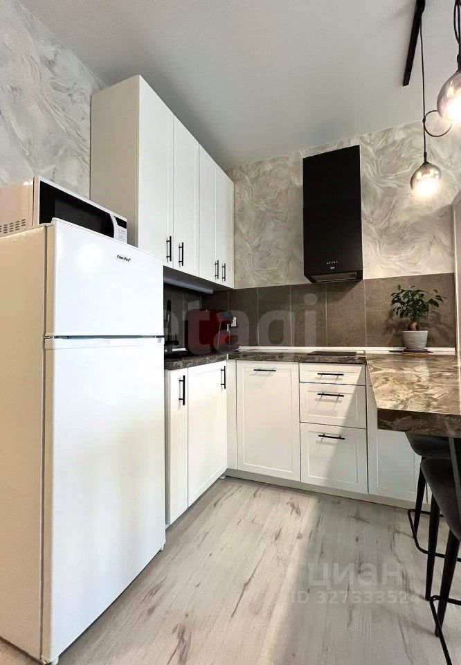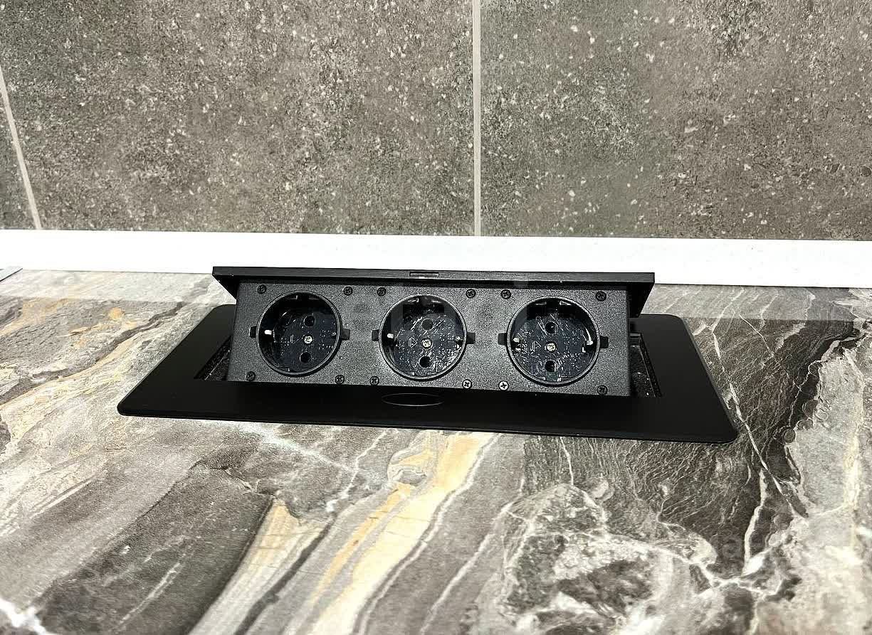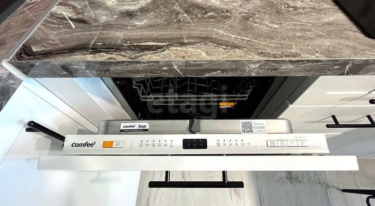 В кухонной зоне: - фильтр для питьевой воды ''Барьер'', - двухкамерный холодильник, микроволновая печь, посудомоечная машина (всё Comfee, бренд Midea Group.), - варочная панель и вытяжка ORE, - зона готовки ''перетекает'' в барную стойку, на которой выдвижная панель с розетками позволяет и её использовать как рабочее место.