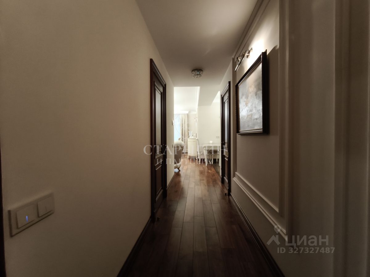 В квартире выполнен дизайнерский ремонт с использованием качественных материалов, на полу паркет из канадского дуба, установлена приточно-вытяжная система вентиляции и кондиционирования, окна выходят на две стороны, высота потолков 3.2 м, планировка состоит из: гардеробной, кладовки, двух санузлов, мастер спальни, спальни, кабинета и просторной кухни-гостиной.