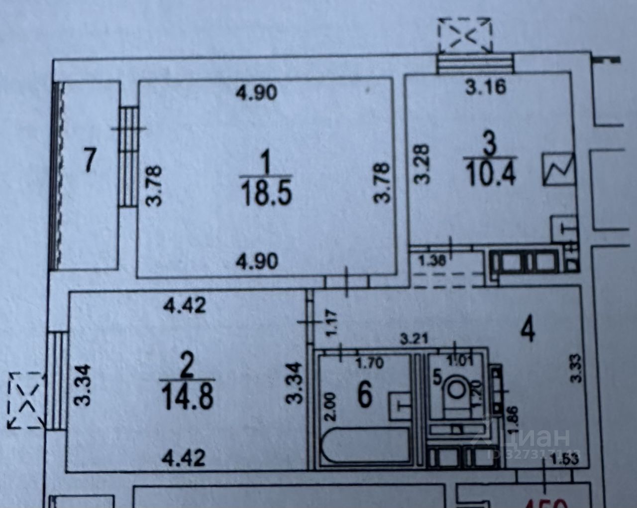 Изолированные комнаты 18,5 м2 и 14,8 м2. Лоджия застеклена.