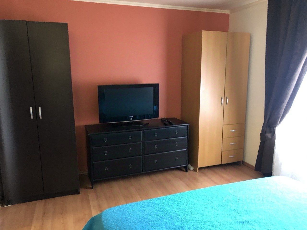 В спальне установлена удобная кровать В ванной комнате современная сантехника и стиральная машина.