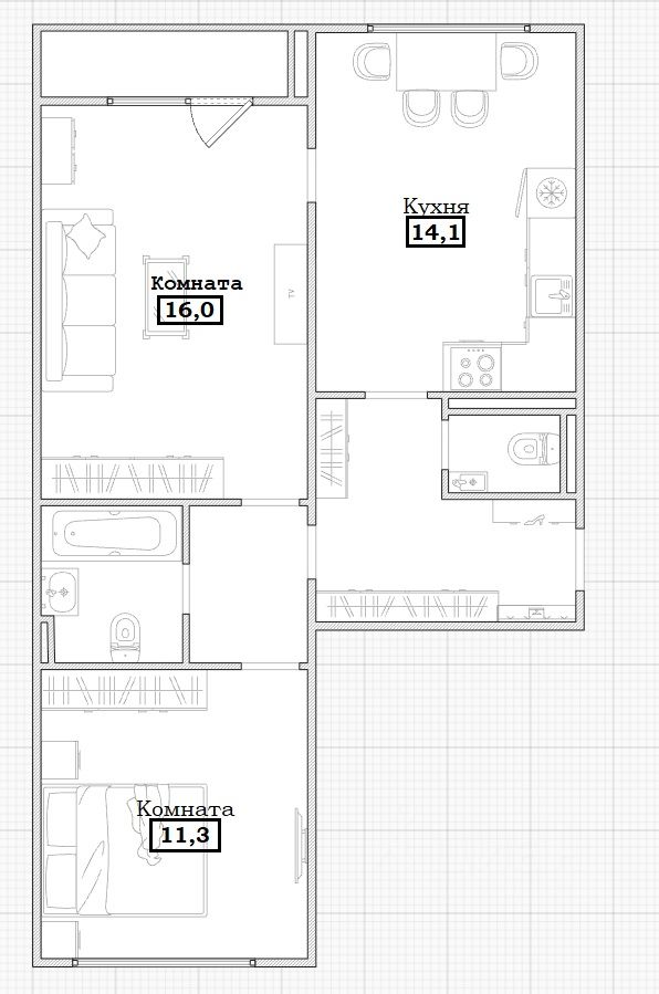 - Удобная планировка квартиры: просторная комната гостиная, 2 вместительных санузла, большая лоджия, большая комфортная кухня,
