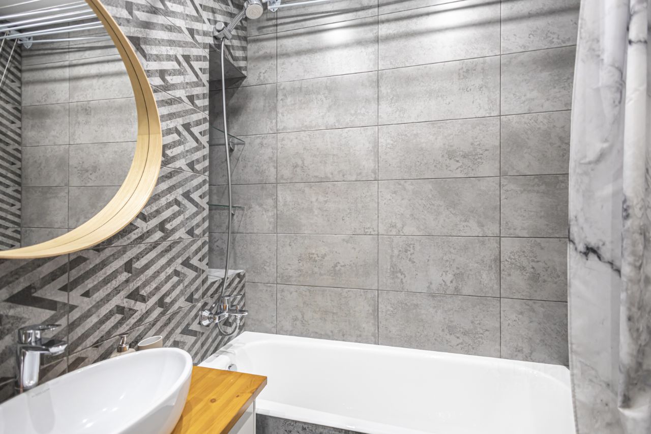 Просторная комната с гардеробом во всю стену. Широкая кровать 1,8*2 метра с местами для хранения. Кухня 13 м2 с дополнительным двуспальным местом. Посудомоечная и стиральная машина, варочная панель, духовой шкаф и СВЧ, вытяжка — все от ведущих европейаских производителей. Немецкая сантехника Grohe. Электро автоматы ABB. Испанская чугунная ванная Roca — большой плюс для ценителей ванн. Квартира очень теплая, отопление оплачивается по счетчикам,, серьезная экономия на оплате гарантирована.
