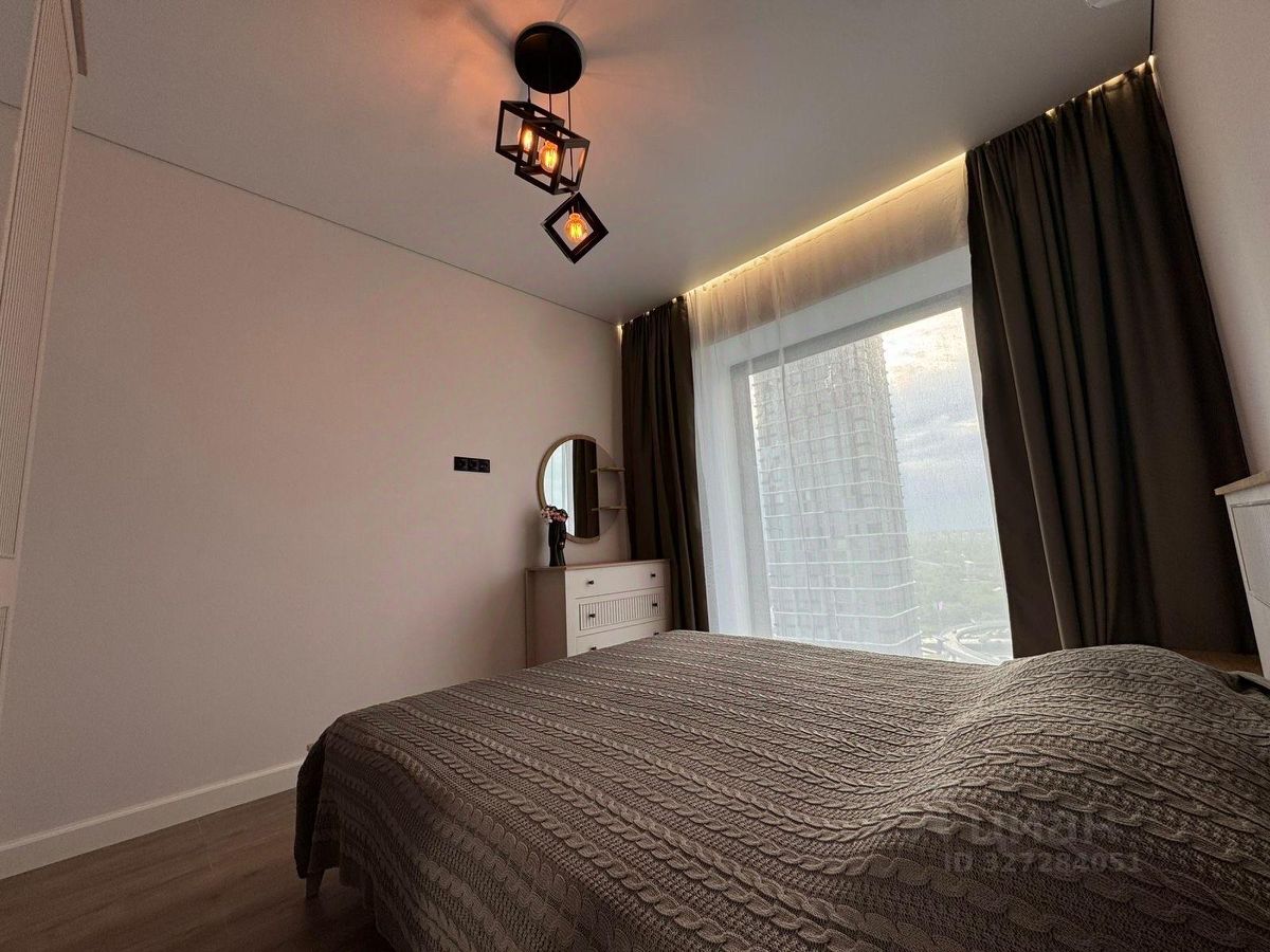 Предлагаем вашему вниманию стильную однокомнатную квартиру в аренду на Волоколамском шоссе, всего в 8 минутах пешком от метро ''Трикотажная''. Общая площадь квартиры составляет 40 кв. м, из которых 15 кв. м отведены под жилую зону, а просторная кухня занимает 18 кв. м. Квартира находится на 25 этаже современного 52-этажного дома. Высота потолков — 3 метра, что добавляет ощущение пространства и света.