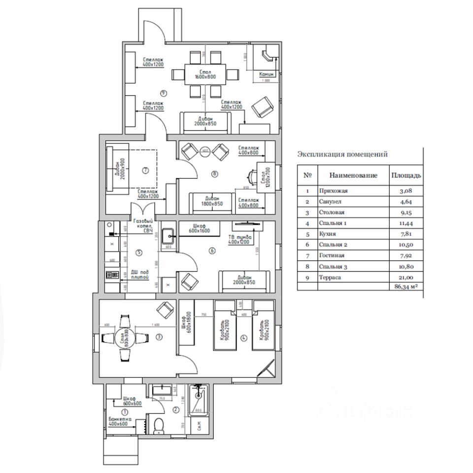 Общая площадь86 м2