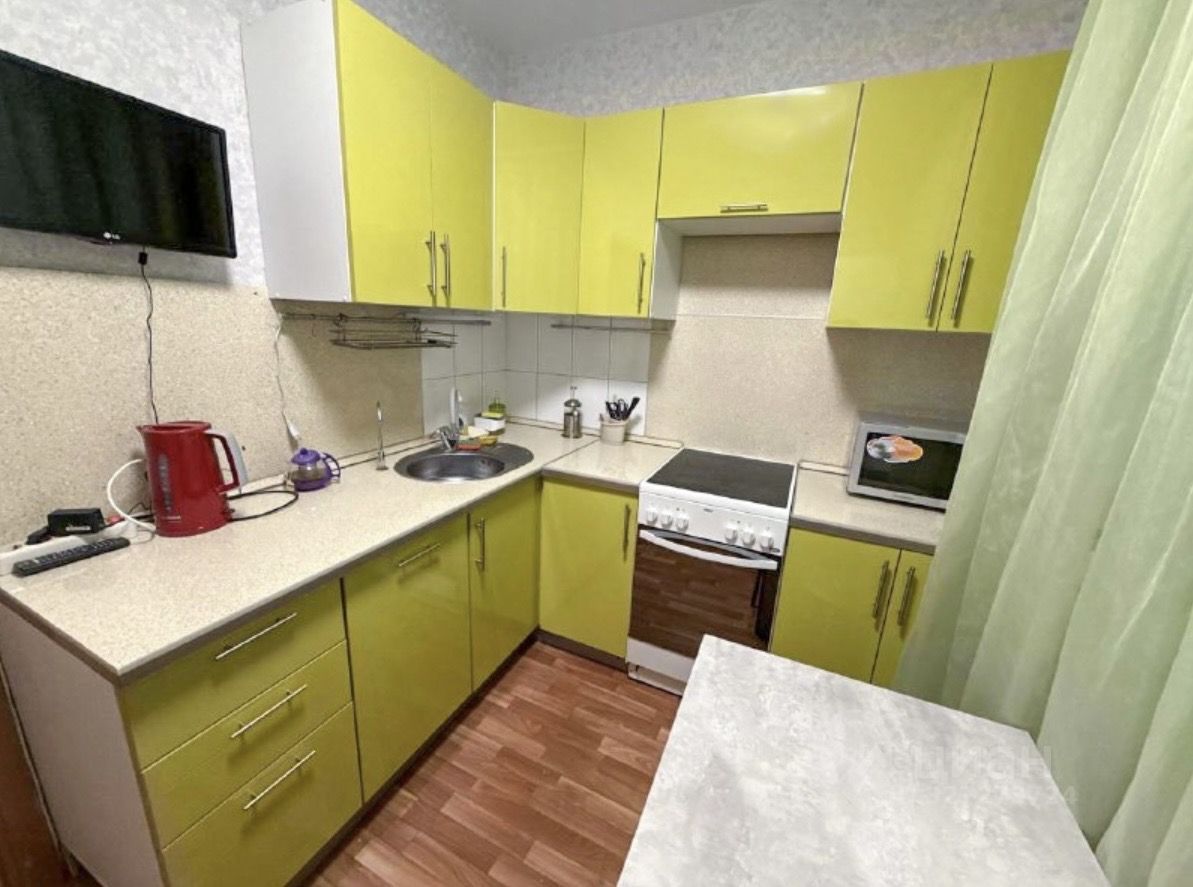 В квартире выполнен косметический ремонт, пространство организовано функционально и удобно. Предусмотрено 3 спальных места — подойдёт для одного человека или небольшой семьи.