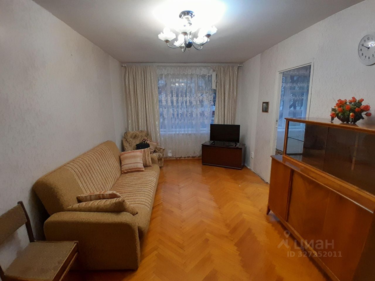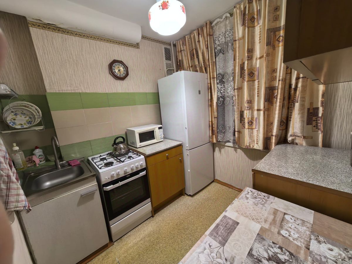 квартира в хорошем состоянии,комнаты смежные 20+12 м.,имеется тёмная комната,мебель(гостиная,спальня,кухонный гарнитур)техника,без балкона,рядом с домом парк,пруд.