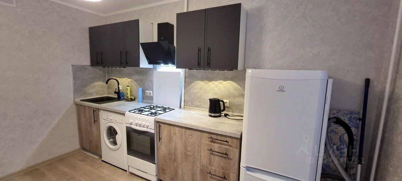 Планировка - изолированная спальня, сан узел совмещенный. Квартира частично укомплектована необходимой для проживания мебелью и техникой (холодильник, варочная панель, духовой шкаф, стиральная машина). Окна выходят во двор. Стихийная парковка во дворе.