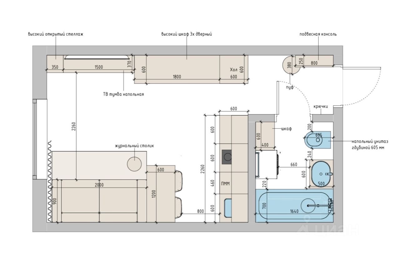 Квартира студийного плана в современном жилом комплексе ''Клементин''.
