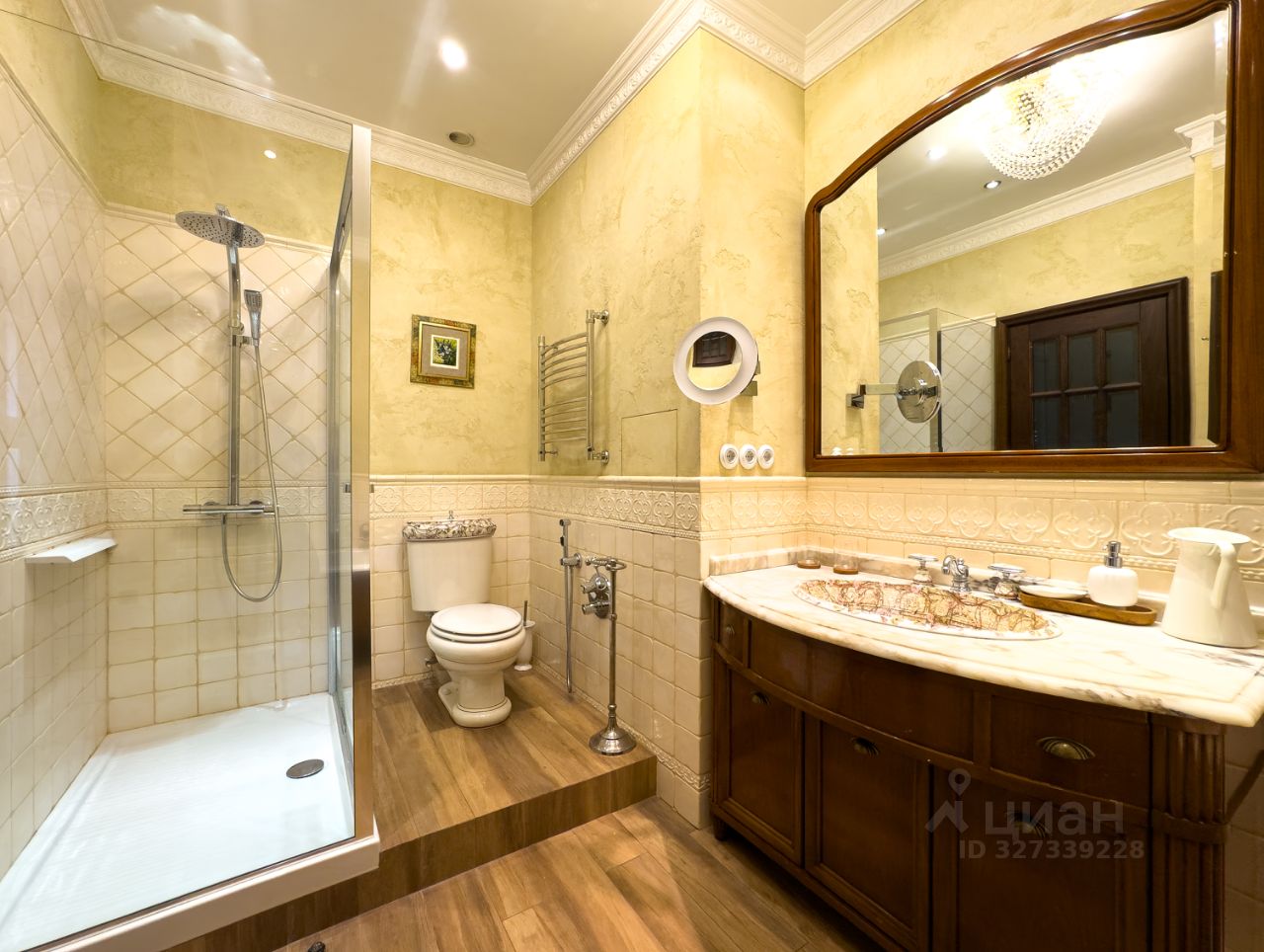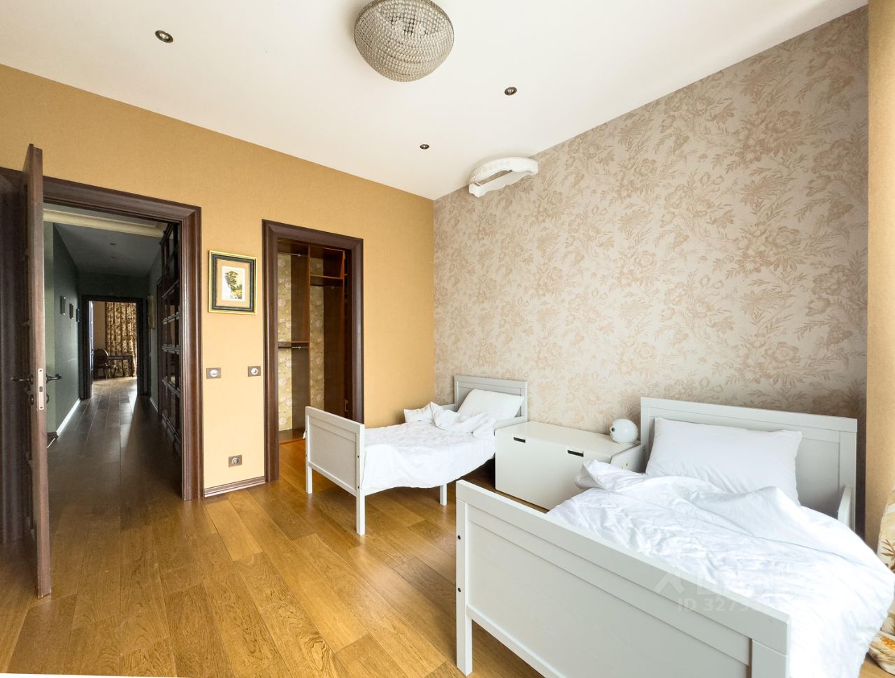 Продуманная планировка позволила разместить в квартире Кухню-гостиную, 3 изолированные спальни, 3 гардеробные комнаты, 2 сан узла.