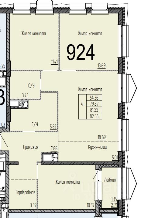 Общая площадь82,58 м2