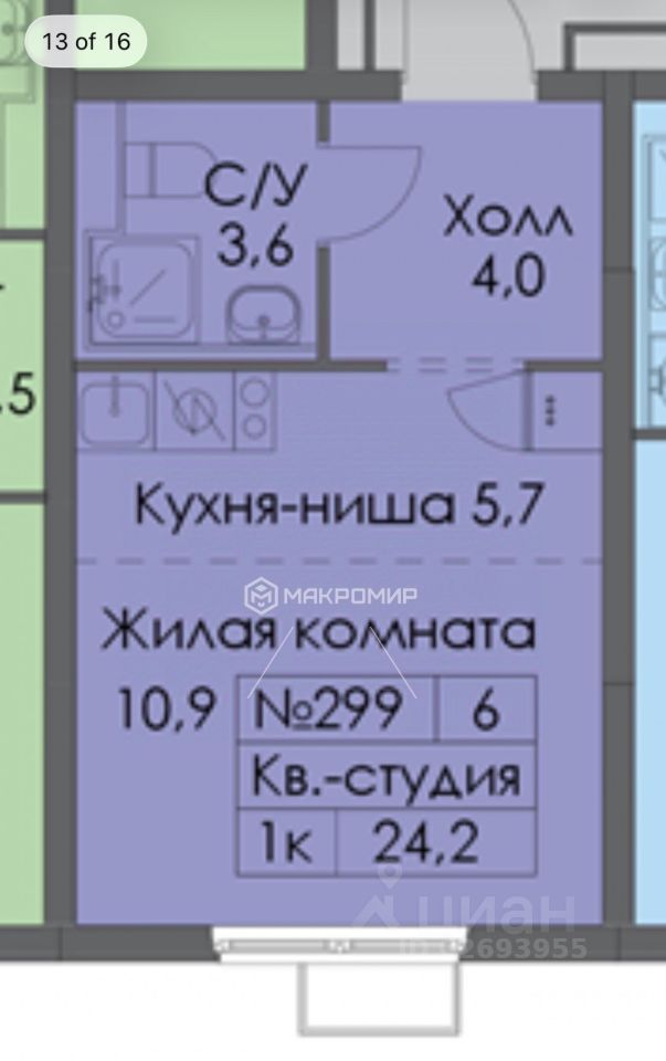 Цена: 14.5 млн р. 3 Минуты от метро пешком