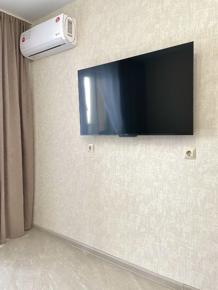 В квартире имеется все необходимое для комфортного проживания : микроволновая печь, варочная панель, вытяжка, кондиционер, телевизор ( Алиса 50 дюймов) , холодильник, кровать с ортопедическим матрасом ( 160 * 200 см ), стиральная машина, чайник, посуда и мебель по индивидуальному заказу ( большой вместительный шкаф )