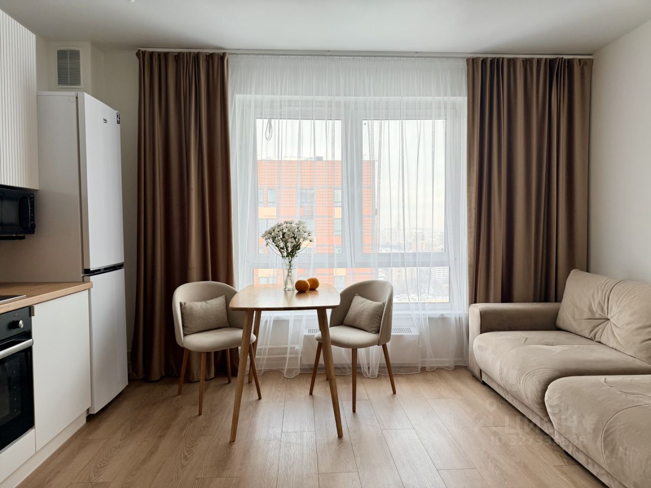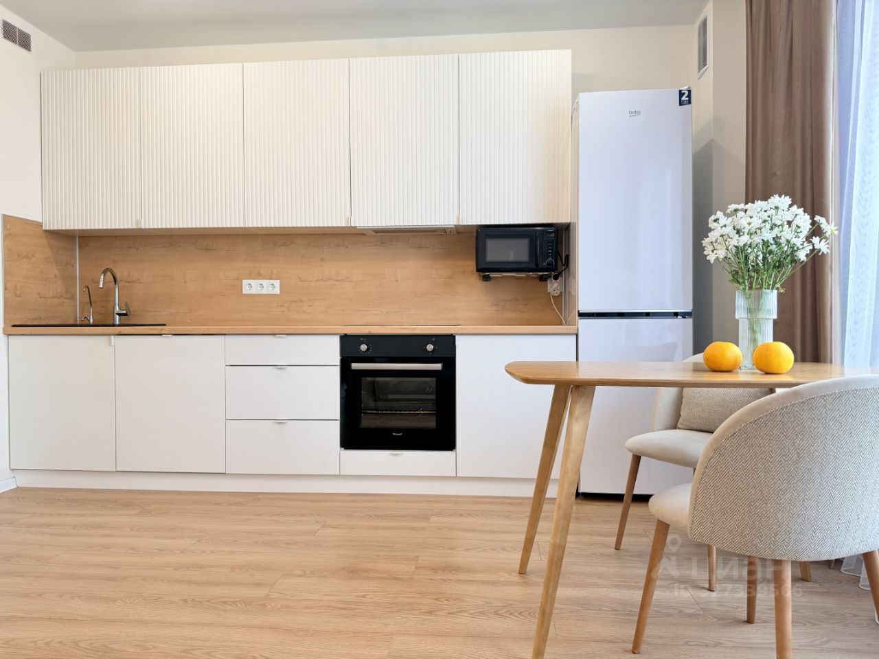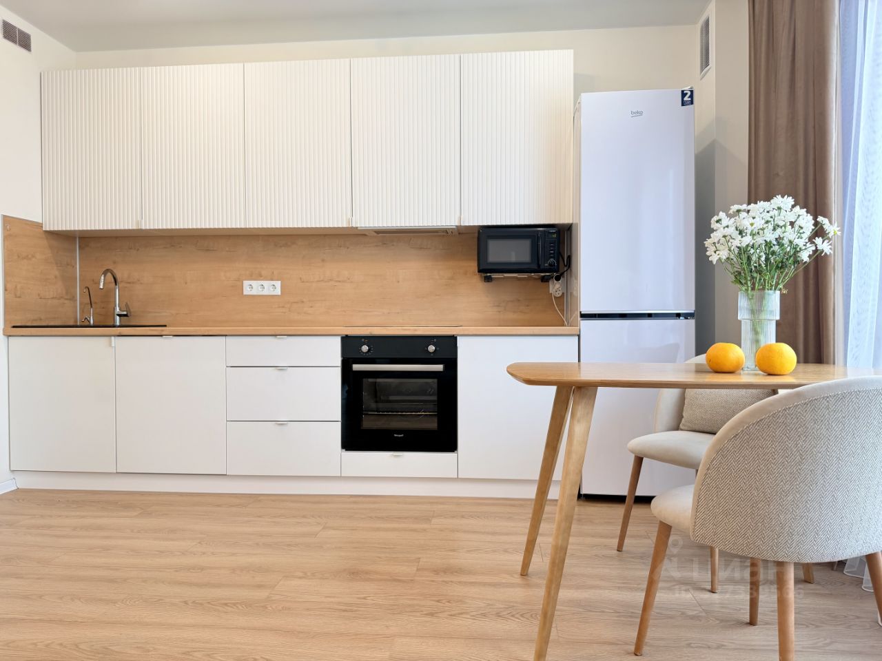 Планировка: кухня гостиная, спальня, свободная комната, где можно организовать детскую или кабинет, два санузла. Квартира укомплектована всей необходимой бытовой техникой: холодильник, варочная поверхность, духовой шкаф, посудомойка, микроволновая печь, стиральная машина.