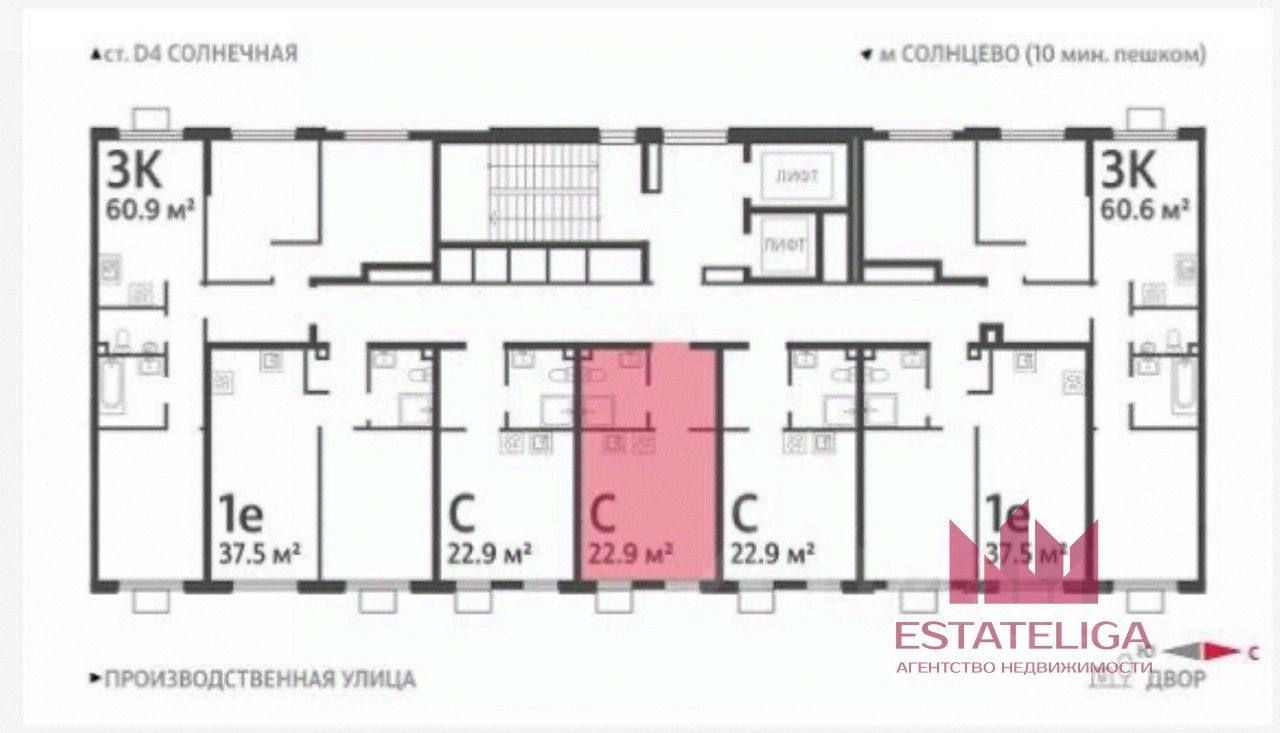 -меньше всего квартир на этаже (7 штук, против 12-18 в других корпусах)