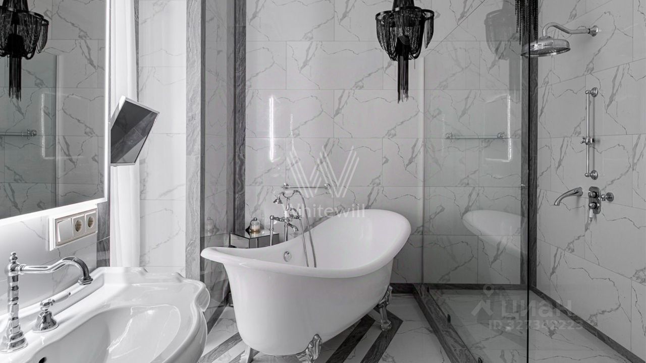 Планировка: просторная кухня-гостиная, спальня с вместительной гардеробной и своим санузлом — с ванной и душевой, гостевой санузел. Гардеробная 20 м² с местами хранения для обуви, платьев, сумок. Два машиноместа в подземном паркинге входят в стоимость. Коммунальные платежи ТСЖ оплачиваются отдельно. В пешей доступности парк Зарядье, Кремль.