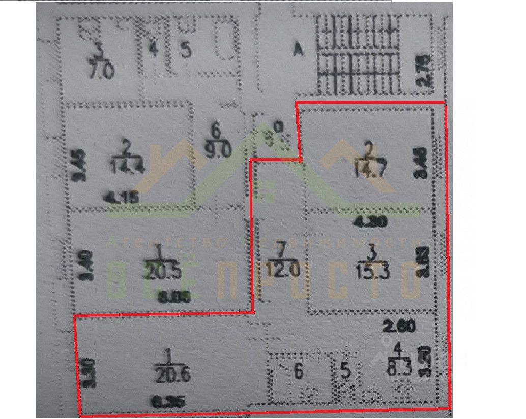 Трешка общей площадью 76,2 расположена на втором этаже. Классическая распашонка. Окна во двор и на улицу. Жилая площадь 50.6, комнаты 14.7, 15.3 и 20.6. Кухня 8.3 Сделать кухню-гостиную? Легко - и еще останется две большие спальни.