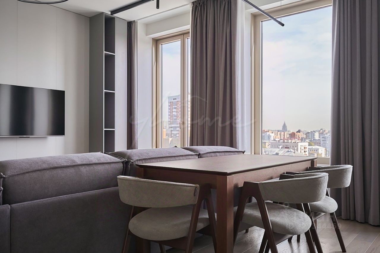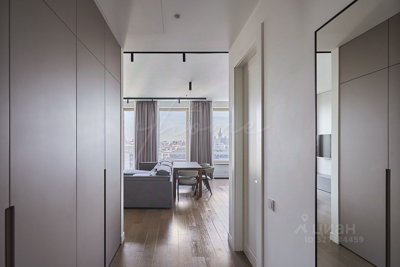 Просторная кухня-гостиная, мастер-спальня с собственным санузлом и гардеробной, спальня, постирочная, гостевой санузел, гардеробная при входе, холл. Благодаря панорамным окнам пространство наполнено естественным светом воздухом, открываются потрясающие виды в сторону Высотки на Кудринской.