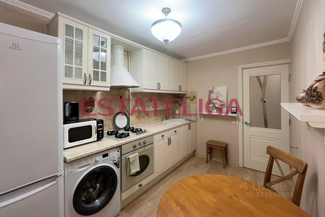 В квартире выполнен ремонт с использованием надежных материалов, качественная мебель. Установлен кондиционер. Кухонный гарнитур оборудован всей необходимой бытовой техникой известных брендов (Kuppersberg, Indesit, Hotpoint): холодильник, духовой шкаф, микроволновая печь, газовая плита, чайник, стиральная машина.
