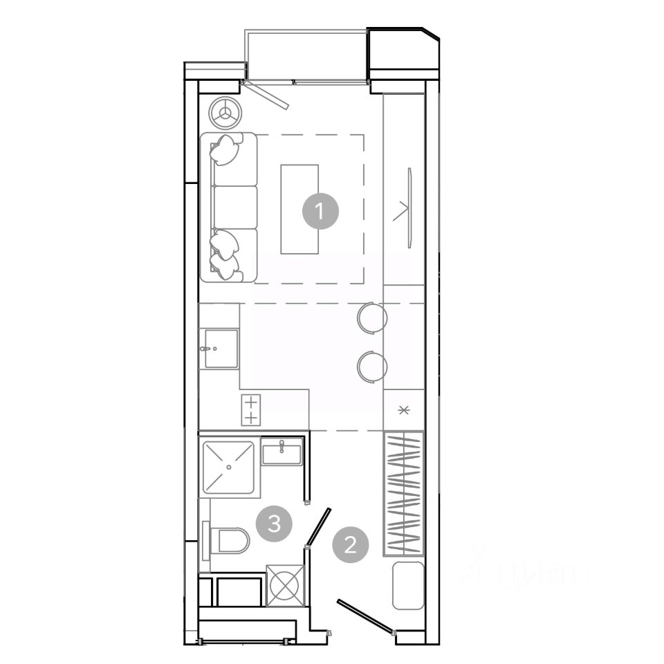 Продается студия площадью 24 кв.м. на 12-м этаже