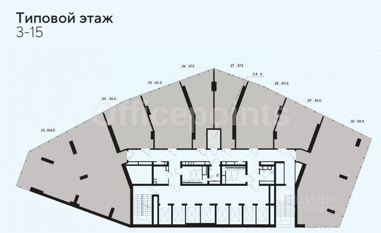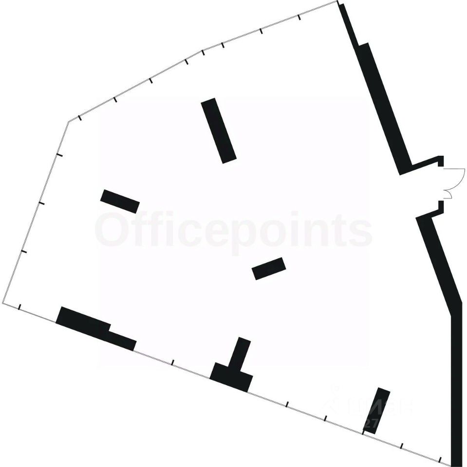 Помещение под чистовую отделку, кабинетная планировка.