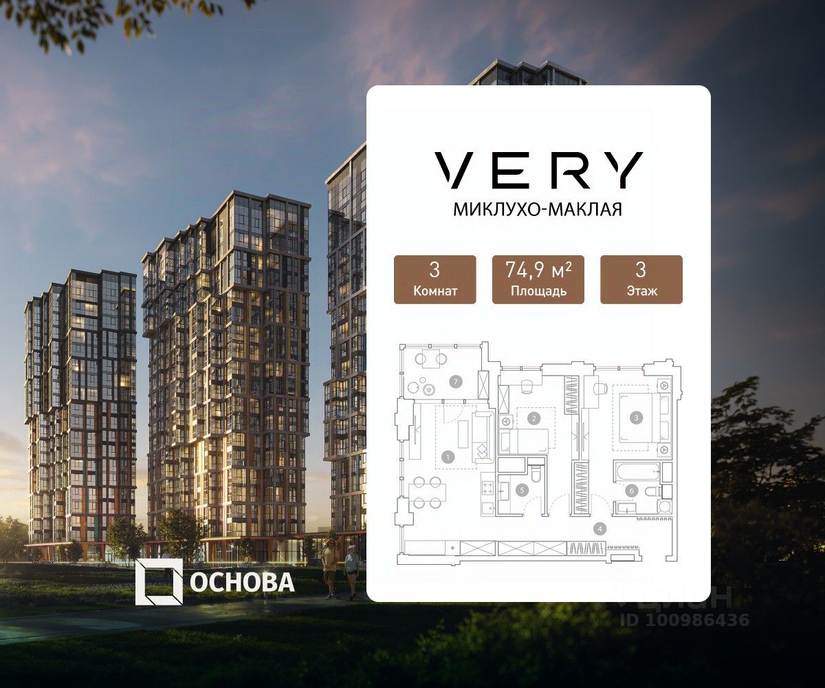 Продается 3-к квартира площадью 74.9 кв.м. на 3-м этаже