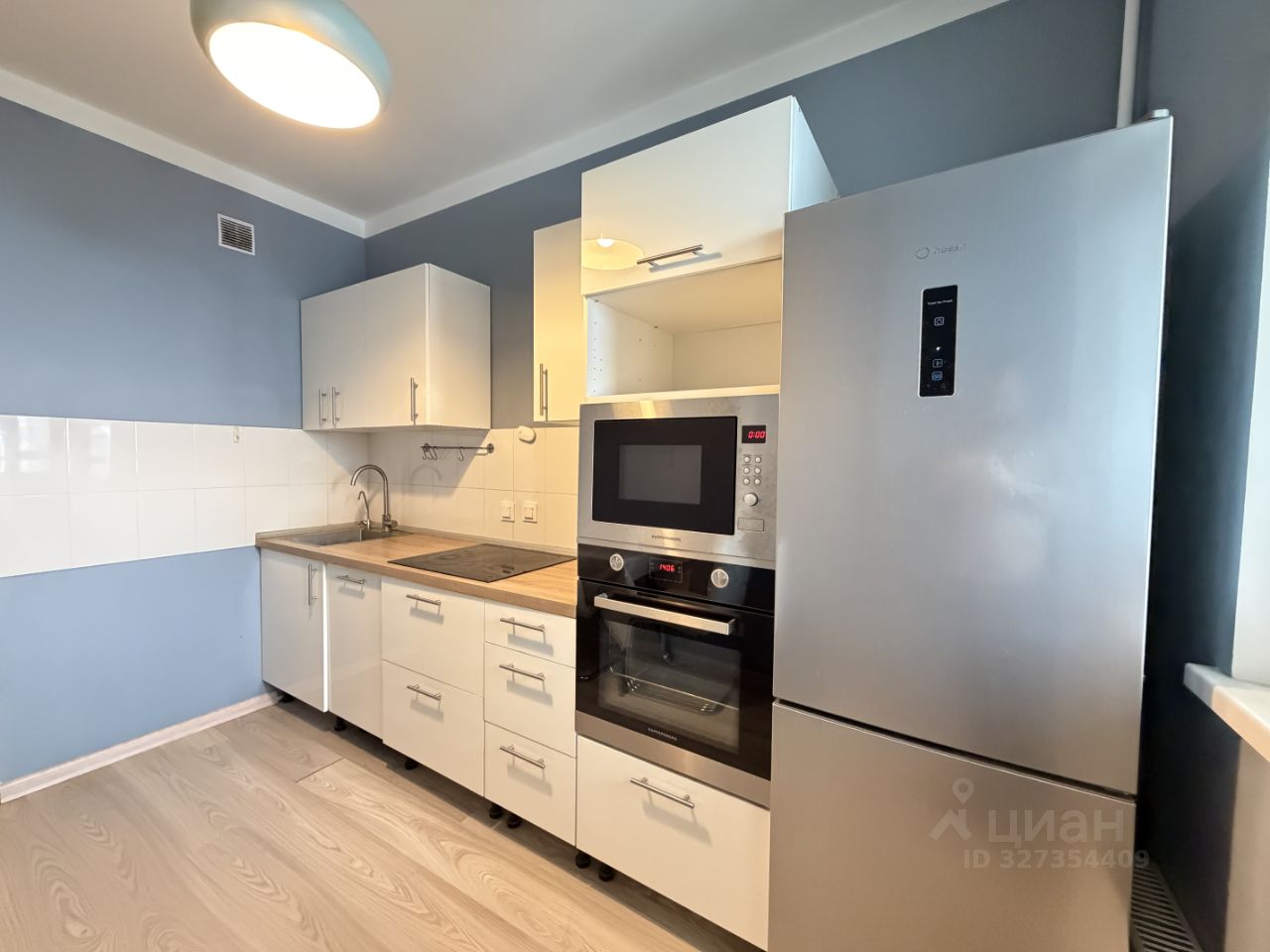 Квартира полностью укомплектована мебелью и техникой, есть гардеробная.