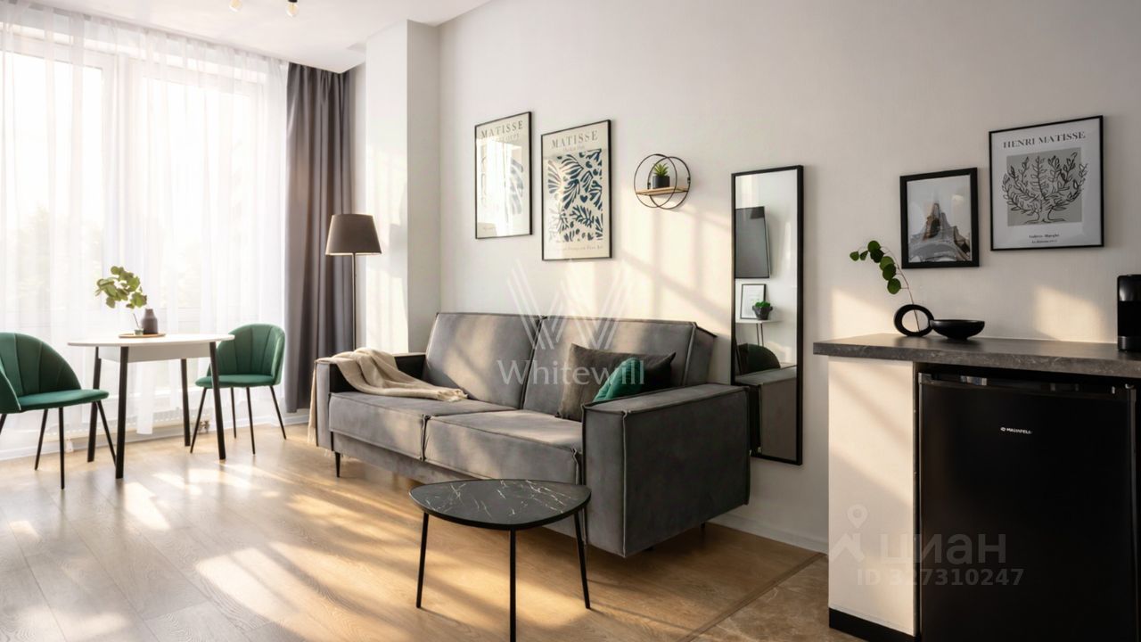 Установлена индивидуальная сплит-система. Функциональная планировка включает кухню-гостиную, спальню, санузел и прихожую. Благодаря панорамному остеклению пространство наполнено естественным светом и теплом. Из окон открываются виды на благоустроенную территорию комплекса.