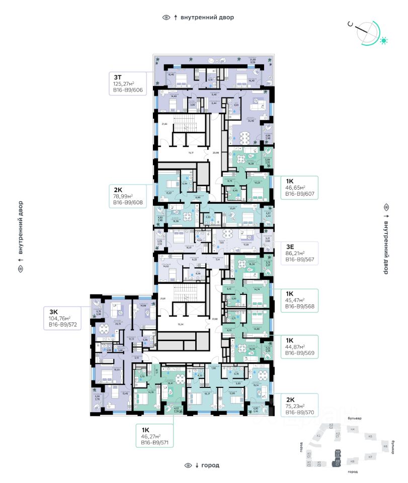 Архитектуру квартала В16 создало итальянское бюро ARCHEA middle east: каждый дом узнаваем, но вместе они складываются в спокойный, цельный ансамбль. В облицовке сочетаются тёплые оттенки кирпича и металла, за счёт игры фактур фасады выглядят живыми и меняются в разное время дня. Строгая геометрия поддерживает ритм города, а мягкая природная палитра помогает чувствовать себя дома, а не в деловом квартале. Дом возводится по технологии монолитного строительства. Квартиры передаются без отделки, что позволяет будущим владельцам реализовать собственные дизайнерские решения и индивидуальные планировки. В квартирах предустановлена система ''умный дом'', объединяющая управление квартирой, домом и прилегающей территорией. Можно регулировать климат и освещение голосом или через смартфон. Высота потолков — от 3,12 м. Квартал состоит из девяти домов средней этажности — от 7 до 10 этажей. Корпуса формируют большой внутренний двор площадью два гектара. Во дворе предусмотрены зоны для разных сценариев: просторные площадки для детей, пространства для активного досуга и спорта, тихие места для отдыха и спокойного времени, а также удобные рабочие места под открытым небом. Здесь легко найти своё — для жизни, здоровья и занятий тем, что действительно нравится. В доме предусмотрены: уютное лобби с зоной ожидания, лапомойка, санузел, помещение для хранения колясок и велосипедов, подземный паркинг.