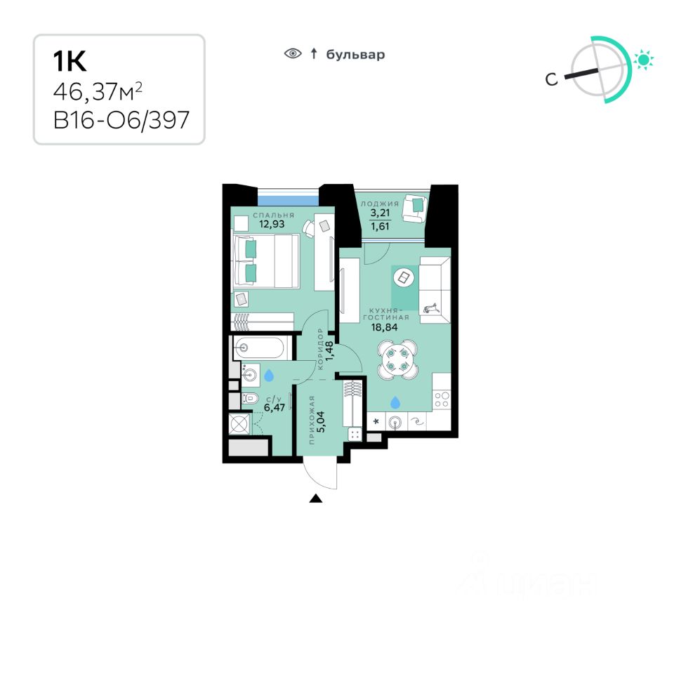 Общая площадь46,37 м2