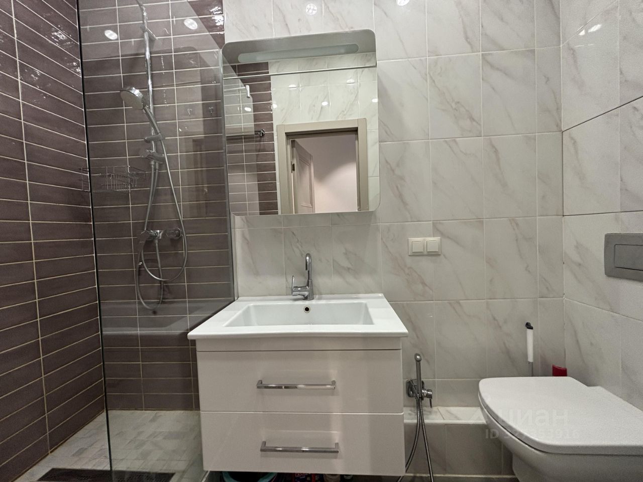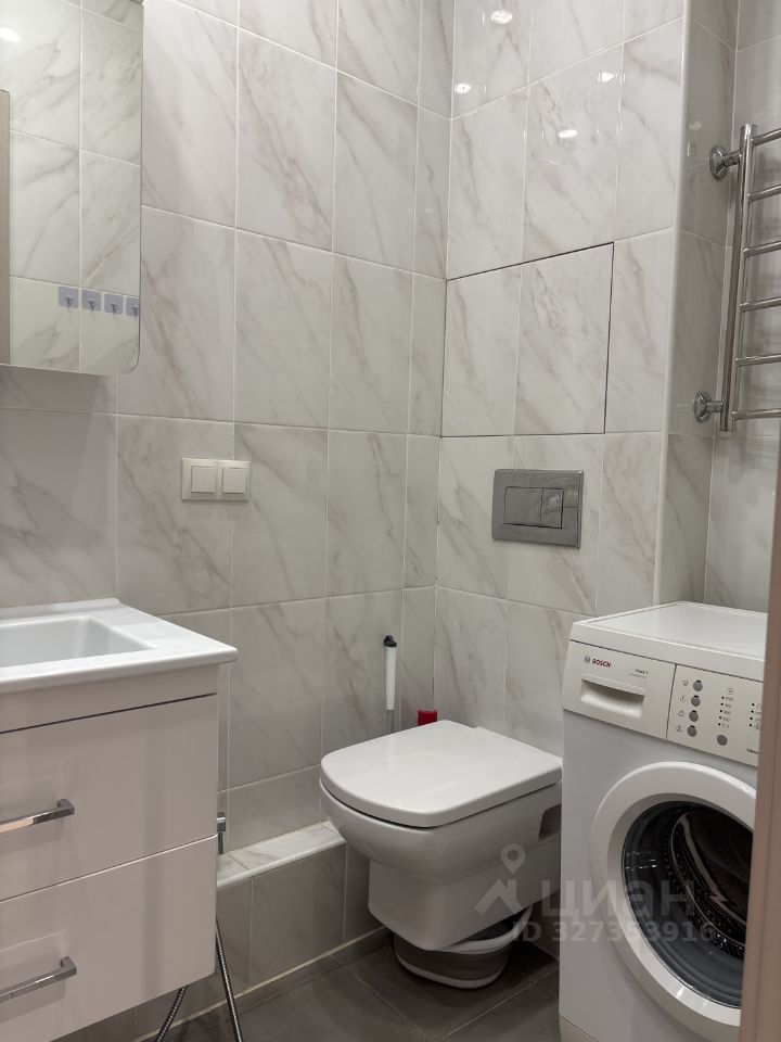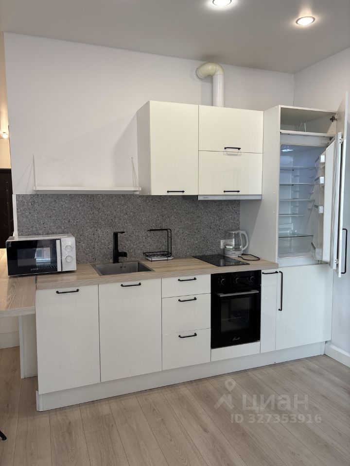 Встроенная кухня со всей необходимой техникой. В квартире есть всё необходимое для комфортного проживания: кондиционер, холодильник и стиральная машина. Мебель установлена как в комнате, так и на кухне. Санузел совмещенный в плитке, оборудован душевой кабиной.