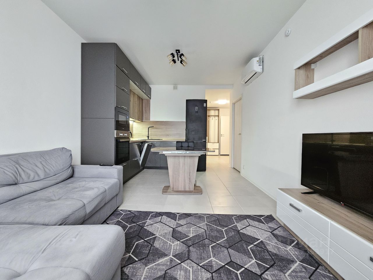 В квартире сделан качественный евроремонт, она полностью готова к проживанию. В вашем распоряжении вся необходимая мебель как в комнате, так и на кухне. Для комфортного проживания установлена современная техника: кондиционер, холодильник, телевизор, стиральная и посудомоечная машины. Ванная комната оборудована ванной.