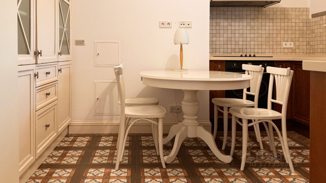 Интерьер оформлен в стиле французской неоклассики. Квартира полностью укомплектована дорогой мебелью и высококачественной техникой. Дизайнерский ремонт выполнен из экологически чистых натуральных материалов. Планировка: просторная гостиная c лаунж-зоной и камином, изолированная кухонная зона с окном и встроенной техникой, кабинет (также можно сделать спальню), родительская спальня, просторная гардеробная, 2 санузла и постирочная. Установлены кондиционеры, интернет и телевидение. Из окон открывается вид на улицу и зелёный двор с пышными деревьями и вишневым садом.