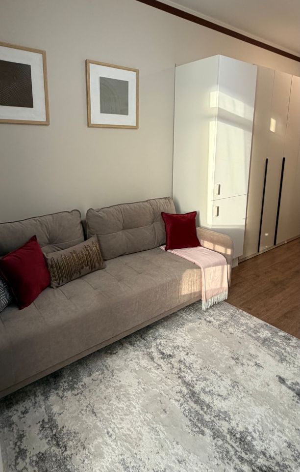 СДАЁТСЯ ВПЕРВЫЕ! ВСЕ НОВОЕ! Вашему вниманию на длительный срок предлагается уютная студия с идеальной системой хранения и просторным балконом - уютное местечко для утреннего кофе в ЖК ''Скандинавия'' (бизнес класс). Закрытая , территория, двор без машин, круглосуточная охрана и прекрасные соседи. Развитая инфраструктура ЖК, где есть все - от магазинов продуктов, кафе, салонов красоты, до фитнес центров, но самое главное есть потрясающие парки со множеством фитнес зон для занятий на открытом воздухе , также зоны для настольного и большого тенниса, площадки для отдыха с качелями, лежаками и более 60 гектаров благоустроенного парка для прогулок и велотрекинга. Школы, детские сады, игровые площадки. Удобная транспортная доступность: 3мин пешком до станции метро ''Потапово'',Новомосковская, 30мин и вы в центре Столицы, доступны 4 станции метро в том числе самая быстрая и удобная новая ветка Троицкая линия путь до станции института дружбы народов занимаем 17 минут . В квартире выполнен качественный дизайнерский ремонт с использованием дорогостоящих материалов, проведены фильтры на вход воды , вы будите принимать душ, умываться уже чистой фильтрованной водой , можно забыть о сухости кожи. Все продумано до мелочей. В наличии вся необходимая для комфортного проживания диван с ортопедическим основанием, вся необходимая бытовая техника. Функциональная кухня оборудована вместительной посудомоечной машиной , плюс идеальная варочная панель , мощная вытяжка и керамическая мойка с гибким изливом, что очень удобно и функционально . Вместительная система хранения, встроенные шкафы на 2.50 м по ширине , где возможно разместить и сезонную и внесезонную одежду, также отдельная секция из полок, куда возможно сложить все необходимое , плюс отдельная голошница для обуви. Гостинная зона состоит из идеального круглого стола во французской стилистике и удобнейших стульев -кресел с ортопедической спинкой, за столиком вполне свободно умещается компания из 4 человек. Ванная комната оборудована дорогой сантехникой , подвесная инсталляция с идеальным смывом, также просторной раковиной , новенькой и максимально функциональной стиральной машиной плюс идеальный тросниковый душ и массажная лейка , также есть милейший электрический полотенце сушитель и мини этажерка из ковки для хранения всего необходимого . Квартира будет идеальной для девушки или молодой пары , строго без домашних животных (извините). Звоните, уважаемые клиенты, буду рада помочь вам!
