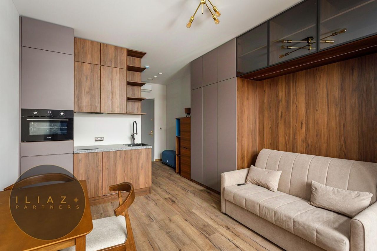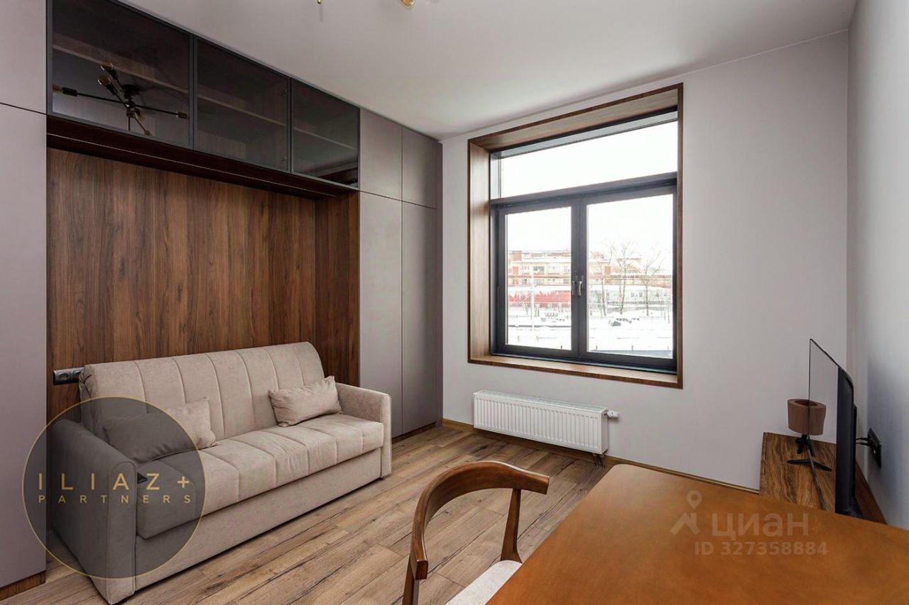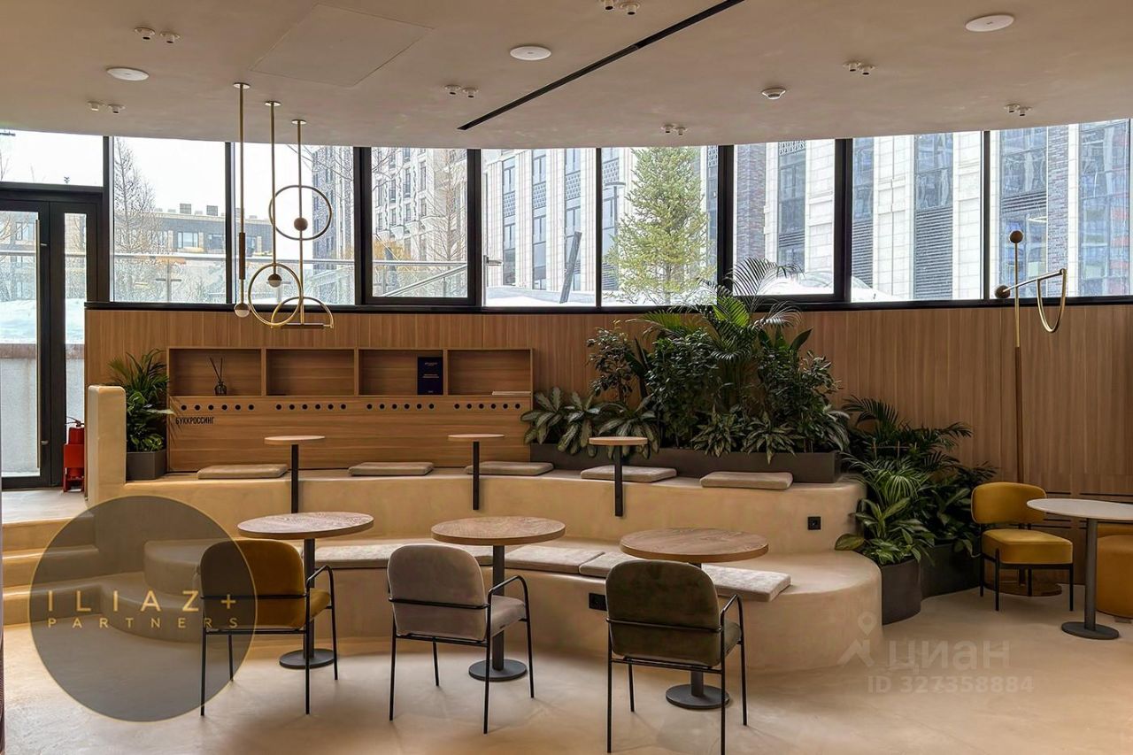 Прекрасная студия окна выходят на ландшафтный двор-парк.
