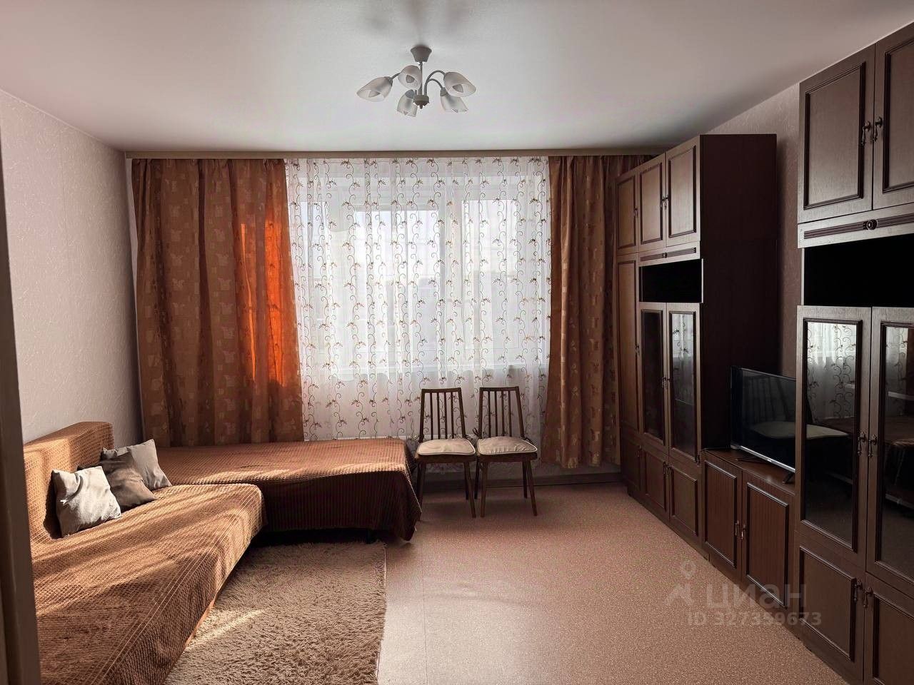 В квартире сделан косметический ремонт, поэтому она выглядит свежо и аккуратно. Обстановка включает в себя необходимую мебель как в комнате, так и на кухне. Для вашего удобства квартира оснащена холодильником, телевизором и стиральной машиной. Санузел раздельный, оборудован ванной. Из окон открывается вид на улицу, а на балконе можно наслаждаться свежим воздухом.