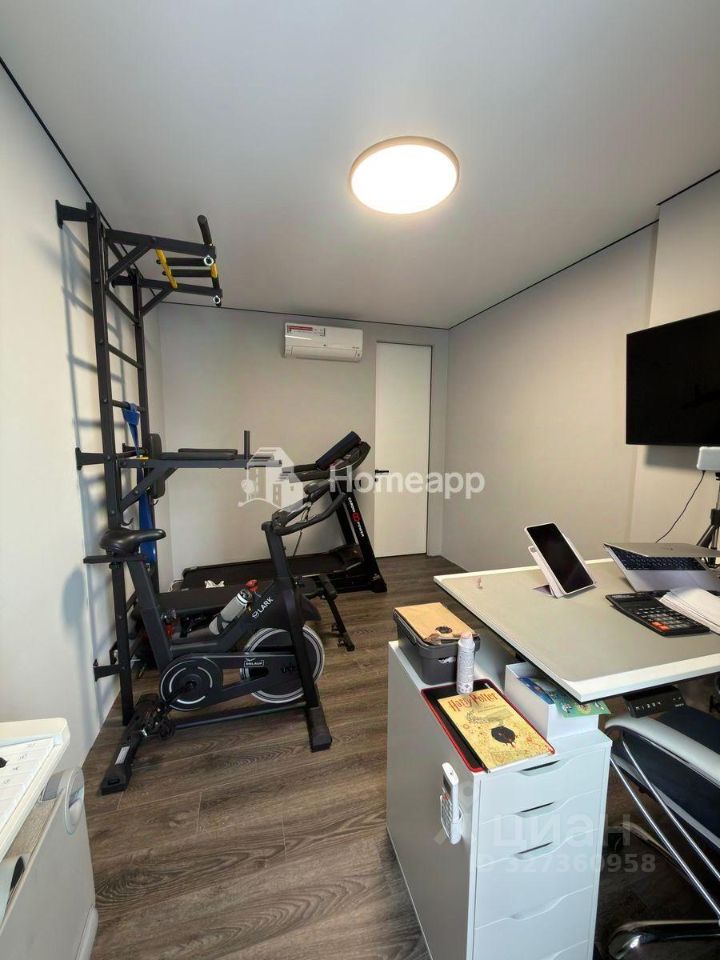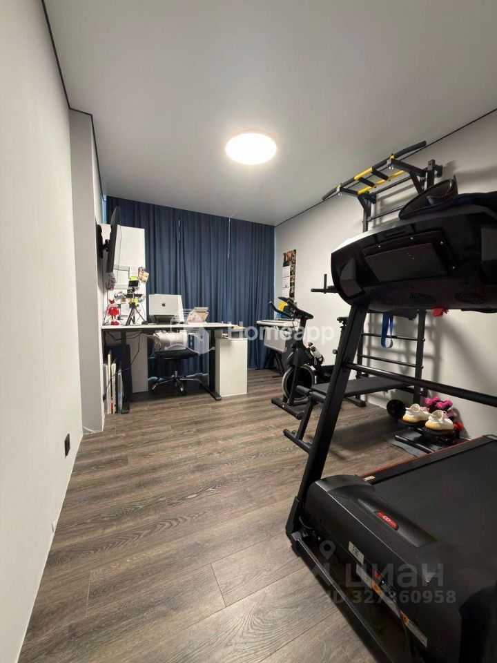Хранение без компромиссов. Просторная гардеробная с продуманной системой хранения и антресолью. Вся встроенная и отдельно стоящая мебель, зеркала, телевизоры и тренажёры остаются новому владельцу.