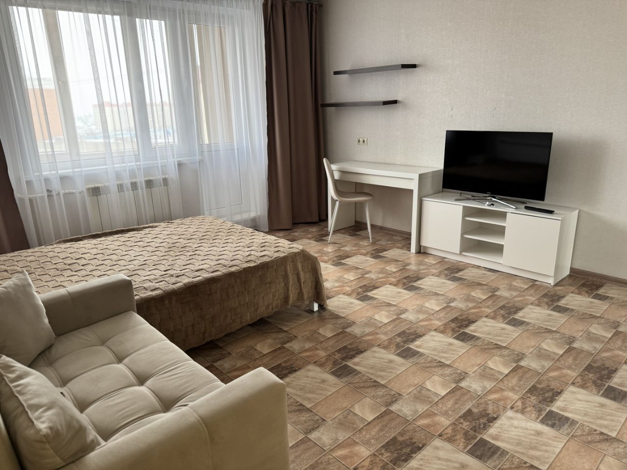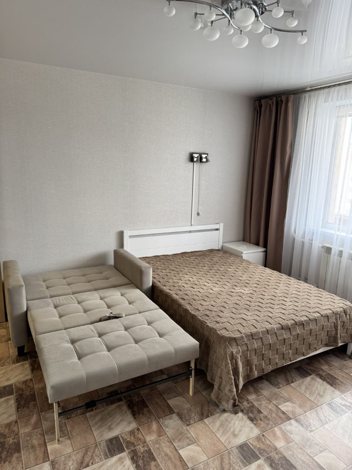 Уютная, светлая однокомнатная квартира с прекрасной транспортной доступностью. В квартире выполнен евро-ремонт и есть всё необходимое для жизни. Квартира полностью готова для проживания. На кухне новый холодильник Full NoFrost, новая микроволновка, чайник, посуда. Санузел раздельный. В ванной комнате просторная душевая кабина, стиральная машина. В комнате полностью новая мебель: кровать 140 см. с ортопедическим матрасом, диван-кровать 125 см., ТВ с тумбой и макияжная зона. Также в квартире оборудована вместительная гардеробная система с большими зеркалами в пол. В коридоре вместительный шкаф-купе. Утепленный балкон с обогревателем и небольшим столиком. Район с развитой инфраструктурой: рядом детский сад, школа с открытым стадионом, магазины, пешеходный бульвар для прогулок.